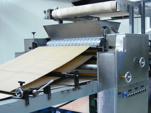 The dough sheet laminator is a type of food machinery with stainless steel construction. It is divided into a vertical laminator, horizontal laminator and cut sheet laminator. The cut sheet laminator makes sure that each dough sheet can be scattered with powder, improving quality and taste of hard biscuit. This laminator is important food processing equipment for fermented soda biscuits.